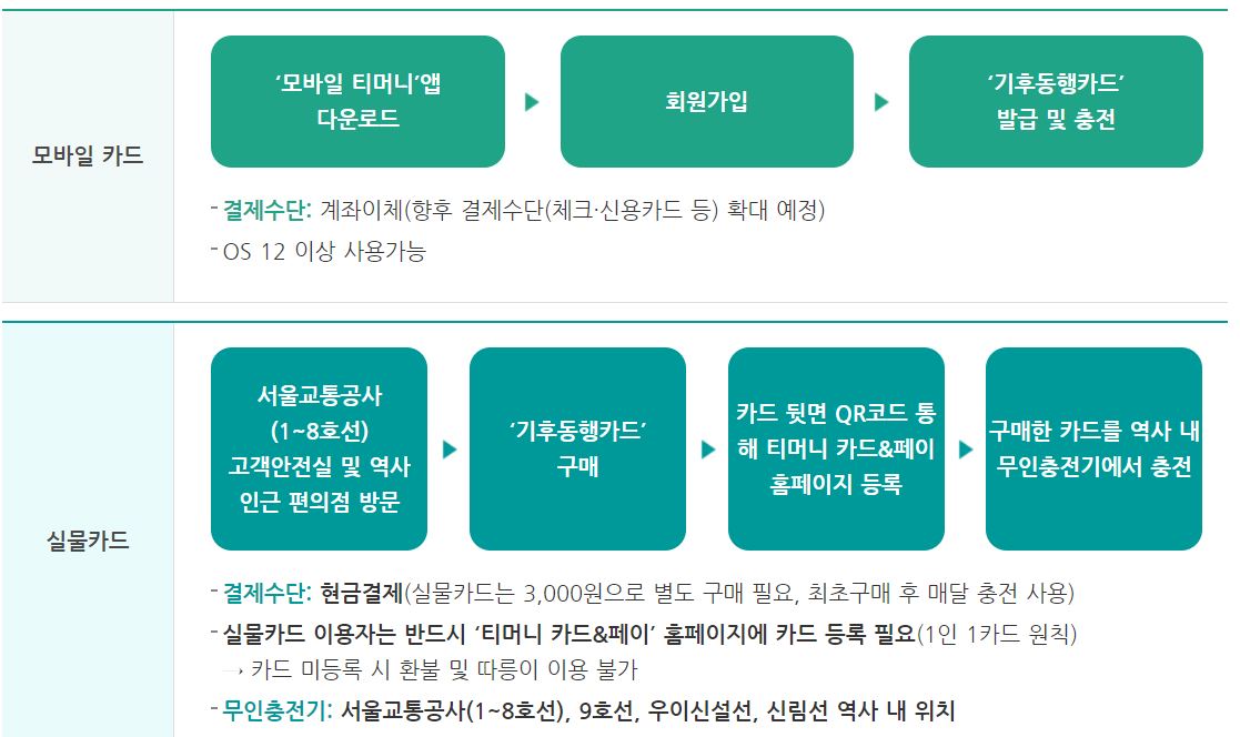 ※ 실물카드 판매처: 서울교통공사 1~8호선 고객안전실