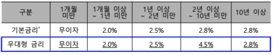 1. 가입기간 2년 이상 시 원금 5천만 원 한도로 최대 10년까지 우대금리 적용