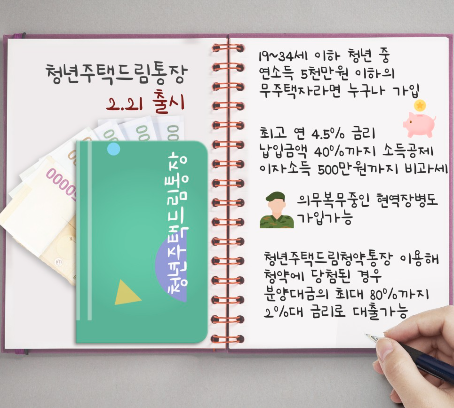 청년주택드림청약통장은 2월 21일부터 전국 주택도시기금 수탁은행에서 신청가능하며, 출시에 맞춰 은행별로 모바일 쿠폰, 경품 등 다양한 가입행사도 진행 예정이라고 합니다.